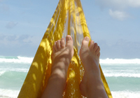 I'm back from Mexico, with tan lines, mosquito bites, and a newfound appreciation for dry clothing. Hurrican Ivan precluded our last four dives, but otherwise the reef time was outstanding. I swam with a shark, a 7' eel, some barracuda, and gazillions of fish. Oh, and across the street from our hotel was one of those exploitative aquariums that corrals dolphins so tourists can swim with them. We sneered at it every time we walked by. However, apparently their tanks aren't hurricane proof, so they carted the animals over to our hotel pool for safe harbor during the storm. Yes, we had 12 DOLPHINS IN THE HOTEL POOL. Beat that. Pictures and stories to resume here shortly.Thanks to Alan for guest hosting while I was gone.